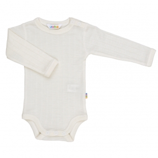 See klassikaline Joha bodi on valmistatud pehmest ja luksuslikust meriinovilla ja siidi segust, mis tundub lapse naha vastas eriti sile ja mugav. Looduslik materjal reguleerib hästi kehatemperatuuri, sobides kandmiseks aastaringselt. Praktilised trukid ühel õlal ja jalge vahel muudavad bodi selgapaneku ning mähkmevahetuse lihtsaks. Ajatu naturaalne toon teeb sellest asendamatu põhieseme igas beebi garderoobis.
