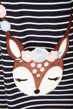 See tumesinise ja valge triibuline kleit on armas ja praktiline valik igapäevaseks kandmiseks. Kleiti kaunistab vahva kitsekese kujuline disain, mis lisab rõivale mängulisust ja lapsemeelsust. Pehmest puuvillast valmistatud kangas on nahasõbralik ja mugav, sobides suurepäraselt aktiivsetele lastele.