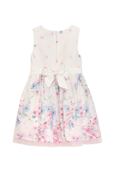 See kergest kangast, naiselikult langev kleit loob romantilise ja piduliku meeleolu. Lilleline muster, tüllist volangid ning efektne ääris muudavad selle täiuslikuks valikuks pulmadeks, leeriks või muudeks pidulikeks sündmusteks.