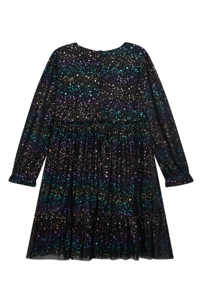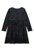 Tüdrukute sädelev tüllkleit värvilise täpimustriga