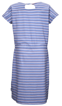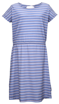 Kerge ja pehme materjal koos elastse sisuga tagab mugava kandmise ning piisava liikumisvabaduse aktiivseteks tegemisteks. Lai U-kaelus ja mugav slip-on lõige muudavad riietumise lihtsaks. Lõdva istuvuse loovad lühikesed varrukad ja langevad õlad, samas kui elastne talje toob esile kauni silueti. Rõõmsameelne triibuline muster lisab kleidile värskust ja suvist meeleolu.