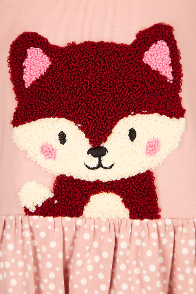 See armas ja mänguline roosa kleit rõõmustab iga väikest kandjat. Kleidi esiosa kaunistab pehme 3D-efektiga tikitud rebasekujundus, mis lisab rõivale erilise ja lapseliku võlu. Ülaosa on mugavast puuvillasest materjalist, samas kui täpiline seelikuosa on kerge ja õhuline. Ideaalne valik nii igapäevaseks kandmiseks.