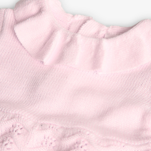 See armas roosa kootud kleit on ideaalne valik sinu pisikesele sügis- ja talvehooajaks. Pehme ja soe kangas tagab igapäevase mugavuse ning tänu kahele kandmisvõimalusele pakub kleit mitmekülgseid stiililahendusi. Klassikaline lõige sobib suurepäraselt nii igapäevaseks kandmiseks kui ka pidulikumateks hetkedeks.
