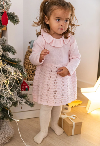 See armas roosa kootud kleit on ideaalne valik sinu pisikesele sügis- ja talvehooajaks. Pehme ja soe kangas tagab igapäevase mugavuse ning tänu kahele kandmisvõimalusele pakub kleit mitmekülgseid stiililahendusi. Klassikaline lõige sobib suurepäraselt nii igapäevaseks kandmiseks kui ka pidulikumateks hetkedeks.