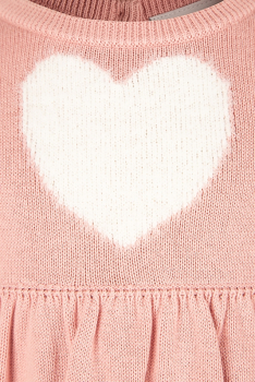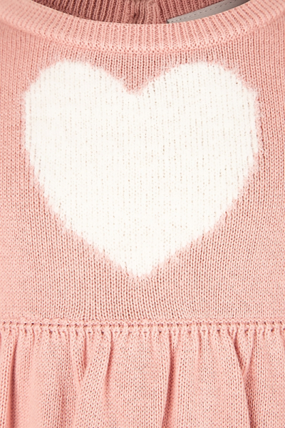 See armas heleroosa kootud kleit on ideaalne valik nii igapäevaseks kandmiseks kui ka pidulikumateks hetkedeks. Kleidi esikülge kaunistab armas valge kootud süda, mis lisab rõivale õrna ja mängulise ilme. Tagaküljel olevad nööbid teevad kleidi selgapanemise lihtsaks ja mugavaks.