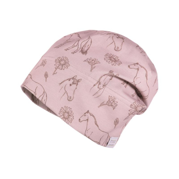 Müts on valmistatud pehmest ja hingavast puuvillasegust ning sellel on mänguline muster, valikus nii hobuste kui ka dinosauruste disain. UV 50 kaitse aitab hoida lapse pead päikese eest. Elastne materjal tagab hea istuvuse ja mugavuse kogu päeva vältel.