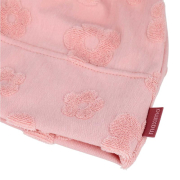 Müts on valmistatud pehmest puuvillasegust ning kaunistatud reljeefsete froteelilledega, mis annavad sellele erilise tekstuuri. Materjal on hingav ja nahasõbralik, tagades mugavuse kogu päeva vältel.