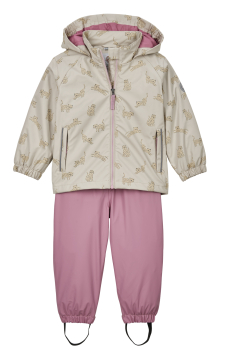 Komplekti kuuluvad kummitud jope ja püksid pakuvad usaldusväärset kaitset vihma ja tuule eest. Tänu teibitud õmblustele ja 10 000 mm veepidavusele ei pääse niiskus ligi ka tugevama saju korral. Lõbus loomamustriga disain lisab mängulisust ning muudab õues olemise veelgi toredamaks.