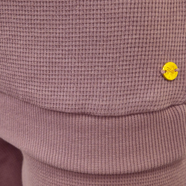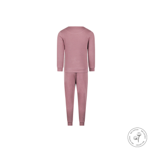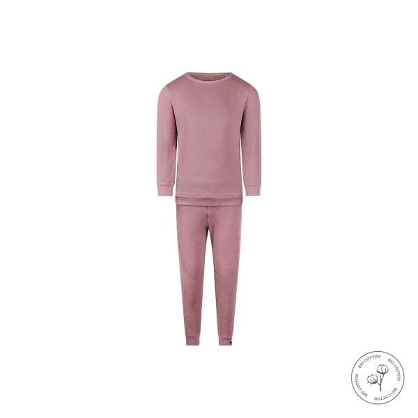 Pehme vahveltekstuuriga kangas on valmistatud 100% orgaanilisest puuvillast, mis on nahasõbralik ja õhku läbilaskev. Kaunis mauve-toon lisab pidžaamale õrna ja tüdrukuliku ilme.