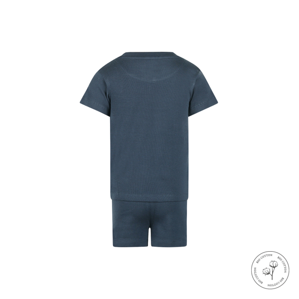 100% orgaanilisest puuvillast vahvelkangas on pehme, õhku läbilaskev ja eriti mugav lapse naha vastu. Tumesinine toon muudab pidžaama ajatu välimusega ning sobivaks nii tüdrukutele kui poistele.