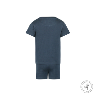 Tumesinised Koko Noko unisex vahvelkangast pidžaamad on mugav ja nahasõbralik valik nii poistele kui tüdrukutele. Lühikeste varrukatega särk ja sobivad lühikesed püksid moodustavad kerge ning hingava suvepidžaama komplekti.