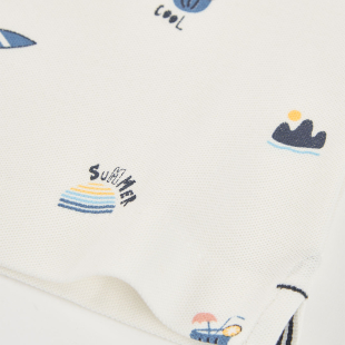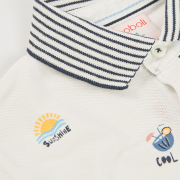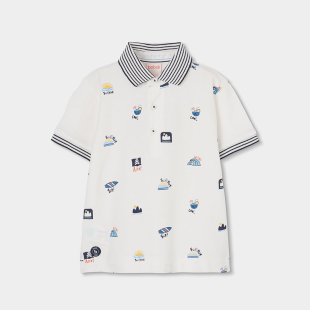 Poiste piqué polo särk on mugav ja stiilne valik igapäevaseks kandmiseks. Hele toon koos väikeste suviste motiividega annab särgile mängulise ja värske ilme.