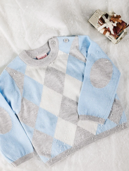 See helesinine rombmustriga džemper on ideaalne valik sinu pisikesele sügiseks ja talveks. Pehmest ja soojast materjalist valmistatud džemper pakub mugavust kogu päeva vältel, samas kui klassikaline ja elegantne disain sobib suurepäraselt nii igapäevaseks kandmiseks kui ka pidulikumateks hetkedeks. Õlal asuvad praktilised nööbid muudavad riietamise lihtsaks ja mugavaks.
