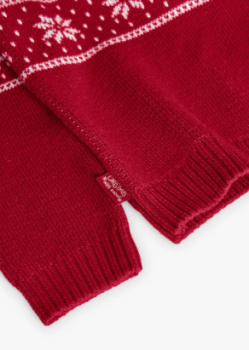 Valmistu jõuludeks kogu perega! See armas punane kootud kampsun kauni lumehelbemustriga lisab talvistele päevadele soojust ja pidulikkust. Pehmest ja soojast kvaliteetsest materjalist valmistatud kampsun on mugav kanda nii argipäeval kui ka jõulupidustustel. Ümar kaelus ja pikad varrukad loovad klassikalise ja ajatu ilme, mis sobib suurepäraselt tumedate pükstega.