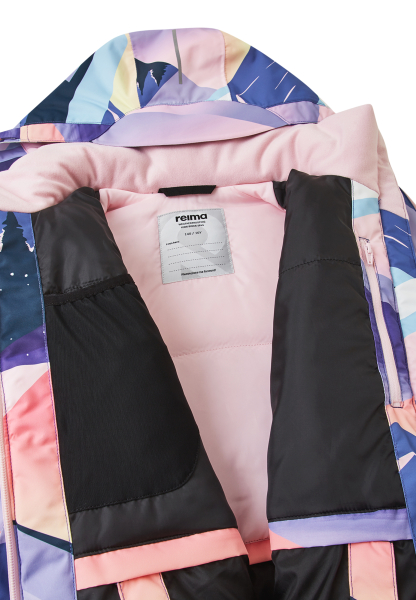 See trendikas Reimateci laste suusajope klamber pakub palju ruumi aksessuaaride, sealhulgas nutika suusapassi varruka tasku ja vetthülgavate tõmblukudega taskute hoidmiseks.