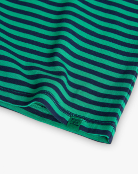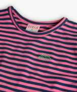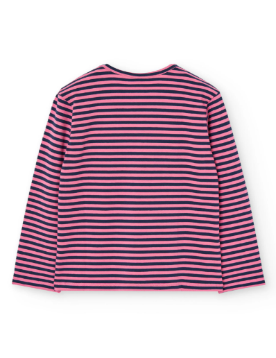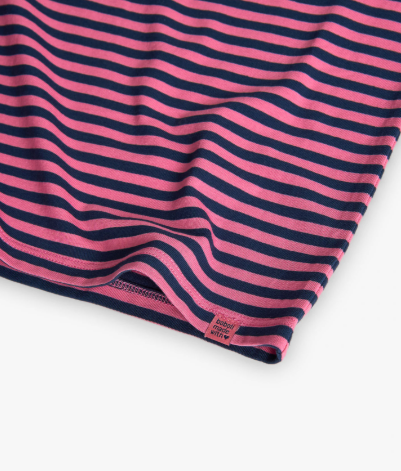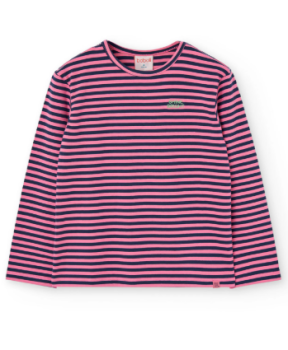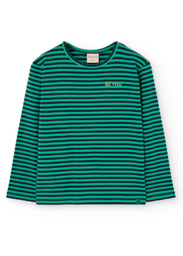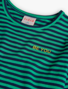 Triibuline pikkade varrukatega pluus tüdrukule, mis ühendab mugavuse ja rõõmsad värvid. Klassikaline triibuline muster annab särgile ajatu välimuse, samal ajal kui väike tikitud tekst rinnal lisab mängulise detaili.