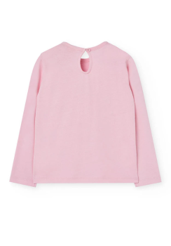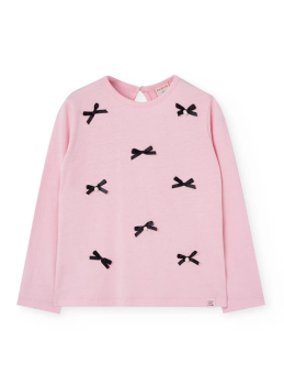 Tüdrukute roosa kootud T-särk mustade lipsudega
