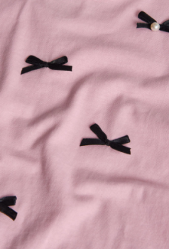 See roosa kootud T-särk mustade lipsukestega toob iga väikese kandja riietusse naiselikkust ja mängulisust. Pikkade varrukate ja ümara kaelusega mudel on soe ja mugav valik sügiseks ja talveks. Valmistatud pehmest puuvillast, sobib see suurepäraselt igapäevaseks kandmiseks.