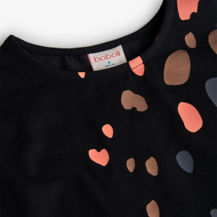 See must kootud T-särk on elegantse, mitmevärvilise abstraktse trükimustriga, mis lisab teie pisikesele moodsa ja stiilse ilme. Kvaliteetne kudum pakub mugavust ja õhulisust, muutes selle suurepäraseks valikuks sügiseks ja talveks.