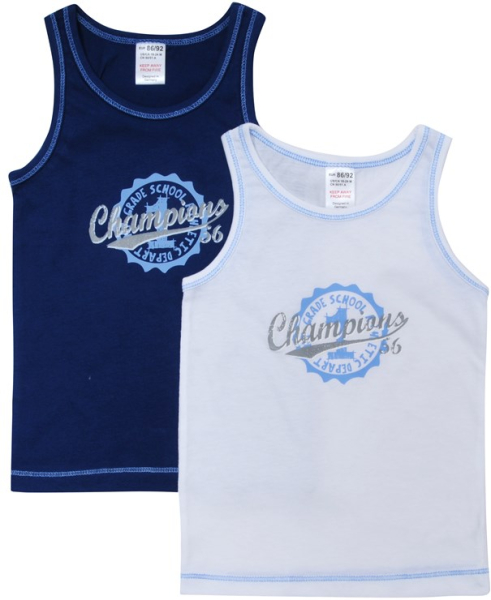 Практичный и удобный комплект из маек Jacky идеально подходит для повседневной носки в качестве базового слоя или для самостоятельного ношения в теплые дни. Классический крой и мягкий хлопок обеспечивают хорошую посадку и приятные ощущения на коже. Спортивный принт «Чемпионы» добавляет живости и мальчишеского шарма.