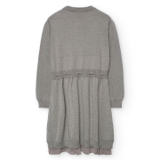 Это стильное и удобное платье для девочек идеально подходит для осени и зимы. Мягкий и теплый трикотаж согреет вашего ребенка, а элегантный серый оттенок делает платье подходящим как для повседневной носки, так и для торжественных случаев. Круглый вырез горловины и длинные рукава обеспечивают классический крой, который дополняет регулируемый завязочный шнурок на талии.