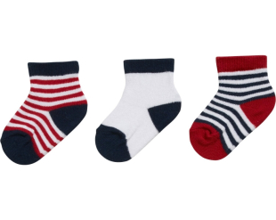Удобные и мягкие детские носки от фирмы Playshoes. В комплекте 3 пары носков. Подходят для возраста около 0-3 месяцев. Состав: 78% хлопок, 19% полиэстер, 3% спандекс. Соответствует международной сертификации OEKO-TEX® Standard 100.